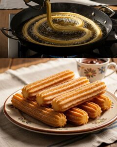 Además, la receta es muy versátil. Puedes darles forma clásica, hacerlos más finos o más gruesos, e incluso darles un toque personal acompañándolos de azúcar, canela, miel o chocolate caliente. Esa capacidad de adaptarse a todos los gustos ha hecho que los churros caseros conquisten a personas de todo el mundo.