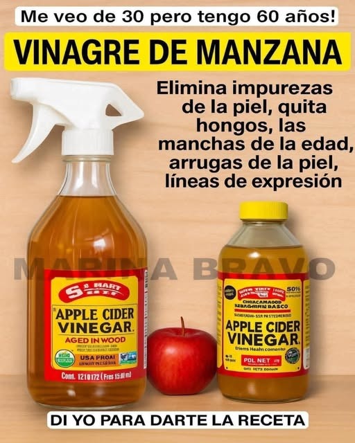 El vinagre de manzana también conocido como sidra de manzana; no solamente sirve como aderezo para ensaladas sino que también sirve como remedio medicinal. Sus beneficios se deben, sobre todo; a una bacteria que es capaz de cuidar nuestro organismo, depurarnos y mejorar nuestras indigestiones.La sidra de manzana es una gran fuente de vitaminas A y B. Además, contiene ácidos grasos esenciales.De igual forma, es rico en minerales, como el fósforo, taninos; calcio potasio, magnesio, sodio, flúor, azufre; zinc, hierro, silicio, boro, etc.