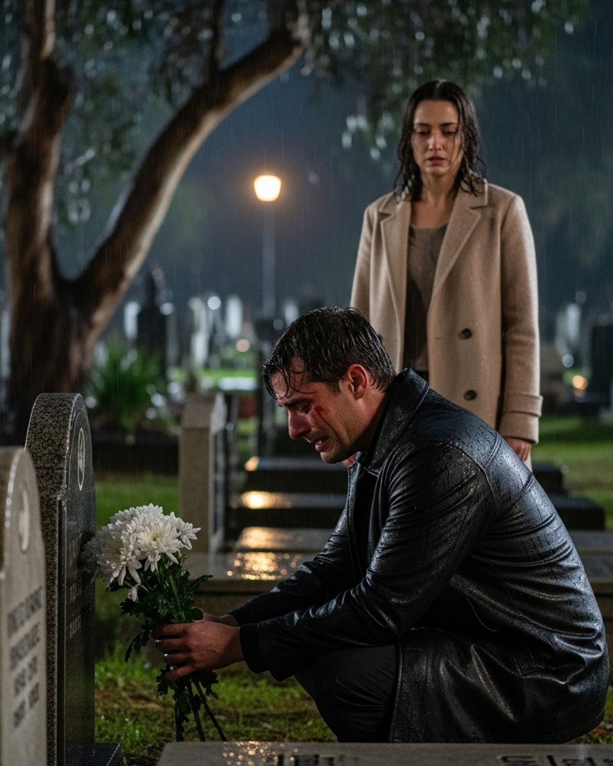 Esa noche, lloviznaba ligeramente. El cementerio estaba vacío, solo el viento entre los eucaliptos rompía el silencio. Llevaba flores blancas, un paño y un manojo de velas. Con manos temblorosas coloqué los crisantemos en la tumba y susurré: