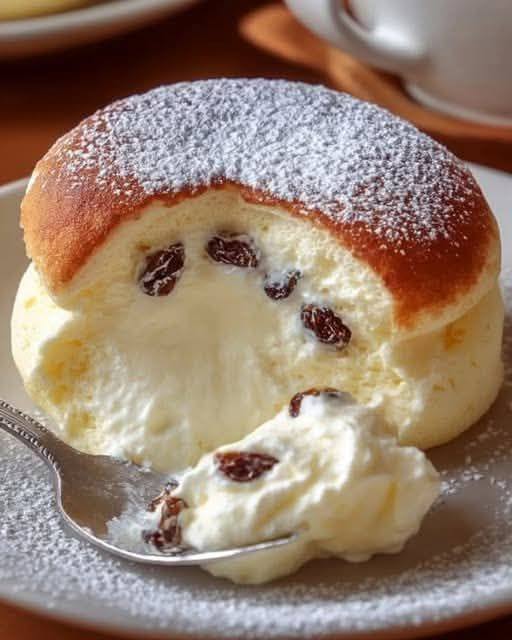 Soufflé Japonés con Crema y Pasas: una nube dulce y delicada que se derrite en la boca