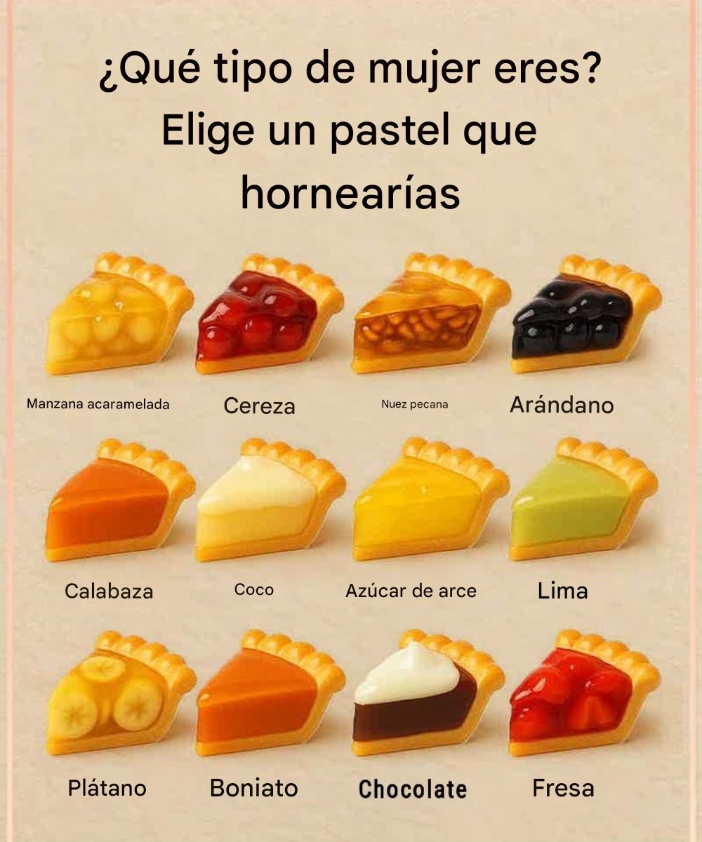 La comida siempre ha sido más que un simple sustento. Es una expresión de personalidad, herencia y estado de ánimo. Al hornear pasteles, los sabores que seleccionamos dicen mucho de quiénes somos. Dulces, ácidos, cremosos o especiados: cada pastel tiene una historia. Mira la imagen de arriba, selecciona el pastel que más te gustaría hornear y explora qué revela sobre tu personalidad como mujer.