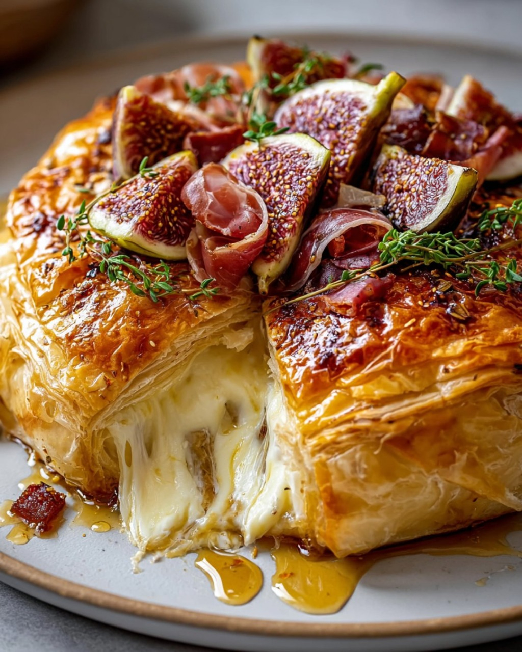 ¿Buscas una entrada elegante, fácil y deliciosa para lucirte en cualquier ocasión especial? Este brie horneado envuelto en masa de hojaldre es un espectáculo de sabor y textura: por fuera, una costra crujiente y dorada; por dentro, un queso cremoso, con el dulzor de la miel, la intensidad del higo y el toque salado del prosciutto. ¡Perfecto para compartir, acompañar con vino y dejar a todos con ganas de más!