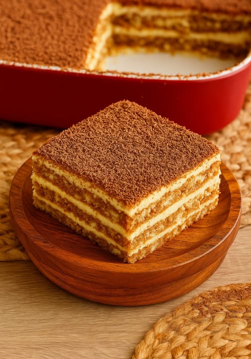 Un pastel cremoso, con capas de bizcochos empapados en café y una cobertura de cacao, ideal para los amantes de los sabores intensos y delicados al mismo tiempo.