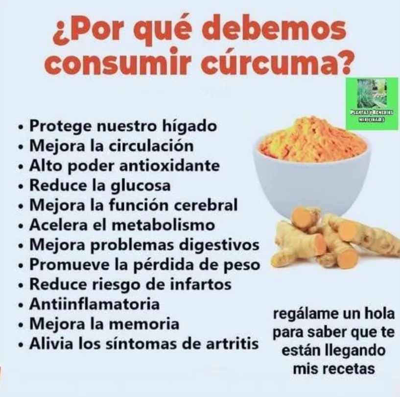 Cúrcuma (curcumina): Potente antiinflamatorio, puede mejorar la memoria y aumentar el nivel de BDNF (factor neurotrófico derivado del cerebro).